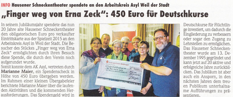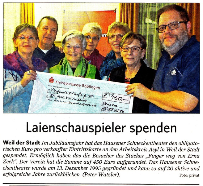 Dieses Jahr ging die erzielte Summe in Höhe von 450 Euro an den